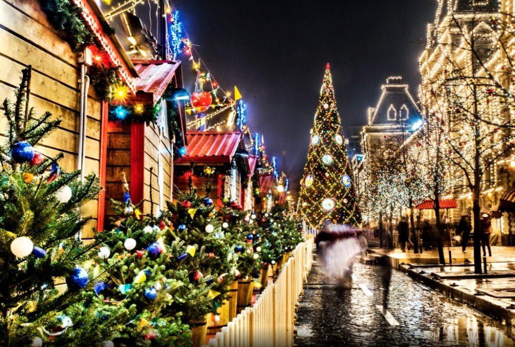 храмов, на площадях великолепные ели соревнуются между собой нарядами, бульвары и проспекты сияют и играют разноцветными огнями.