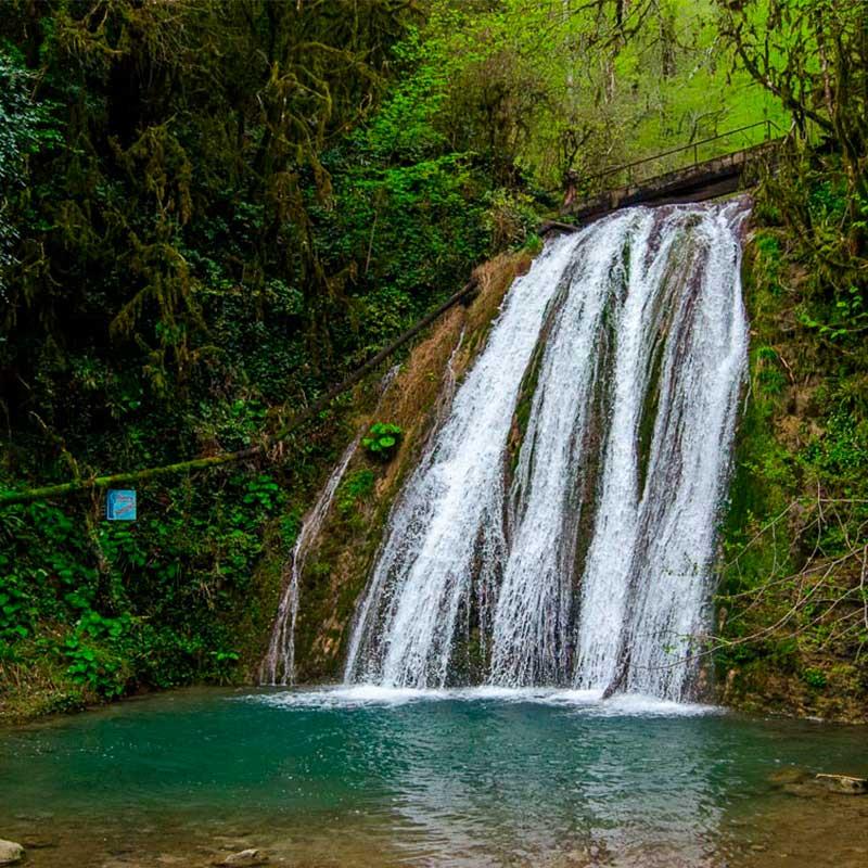 Затем Вас встречают машины ''Газ-66'', которые провозят Вас через реку Шахе с брызгами к водопадам. Удобная тропа проложена до двенадцатого каскада, она оборудована деревянными настилами с перилами. Вы сможете поплавать в купальных чашах, которые образовывает падающая вода. В некоторых местах водопады достигают высоты 12 метров, это удивительное творении природы подарит множество незабываемых впечатлении.
